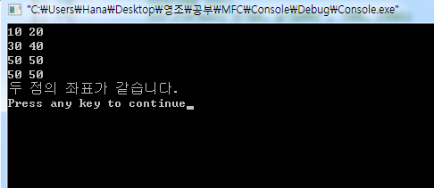 cout << "두 점의 좌표가 다릅니다." << endl;